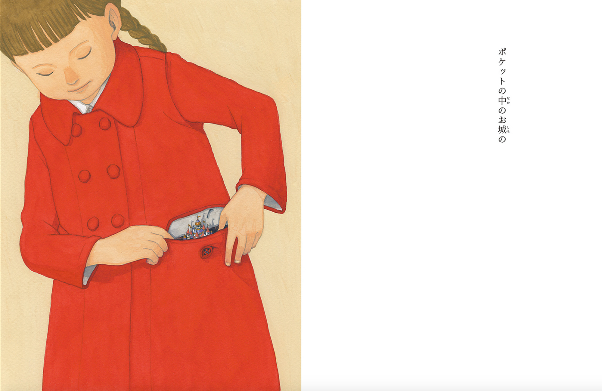 「わたしの お気に入りのコートの ポケットの中のお城の いちばん上のながめのよい部屋の 王さまのキングサイズのベッドの─」(文中より抜粋)